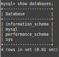 Innanzitutto occorre impostare il database: per vedere i data base presenti sul sistema appena installato digitiamo