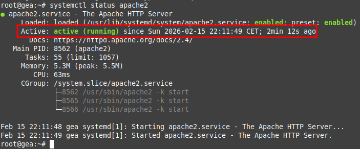 Per verificarne la corretta installazione possiamo digitare: systemctl status apache2